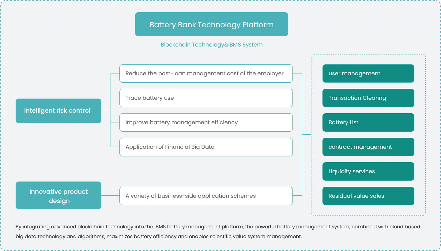 UOTTA ™ Battery bank, through professional and large-scale battery management technology, enhances the performance of battery life cycle and the entire life cycle, maximizing the value of each link in its use. At the same time, Battery Bank combines blockchain technology to master all battery asset information and links it with virtual digital currency to achieve the monetization of battery assets.